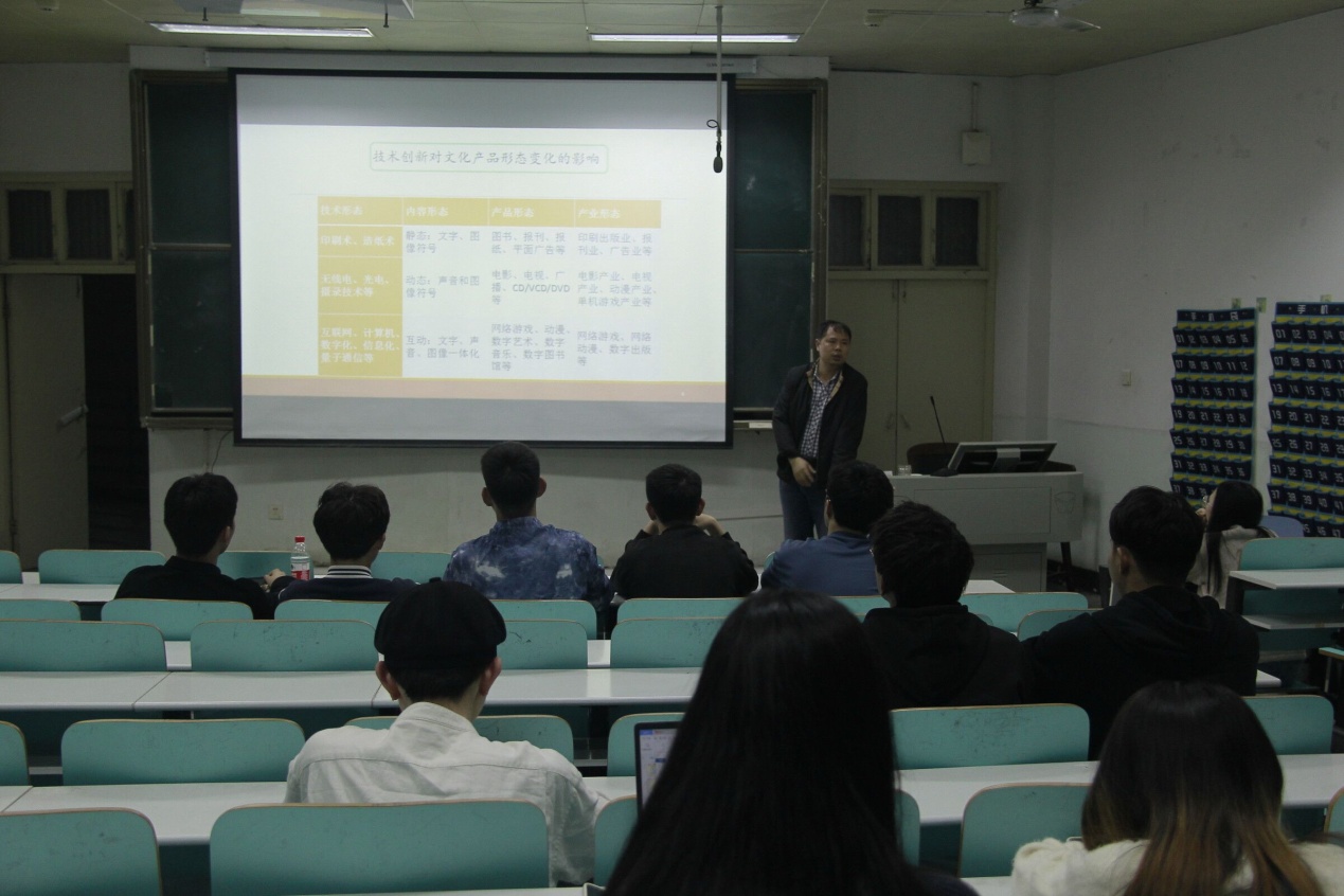 3月15日晚,文化产业管理系主任李国东博士在人文楼509教室作了题为“科技创新与文化产业管理”的学术讲座,此次讲座由副院长孙炜主持,文化产业管理专业同学到场听讲。