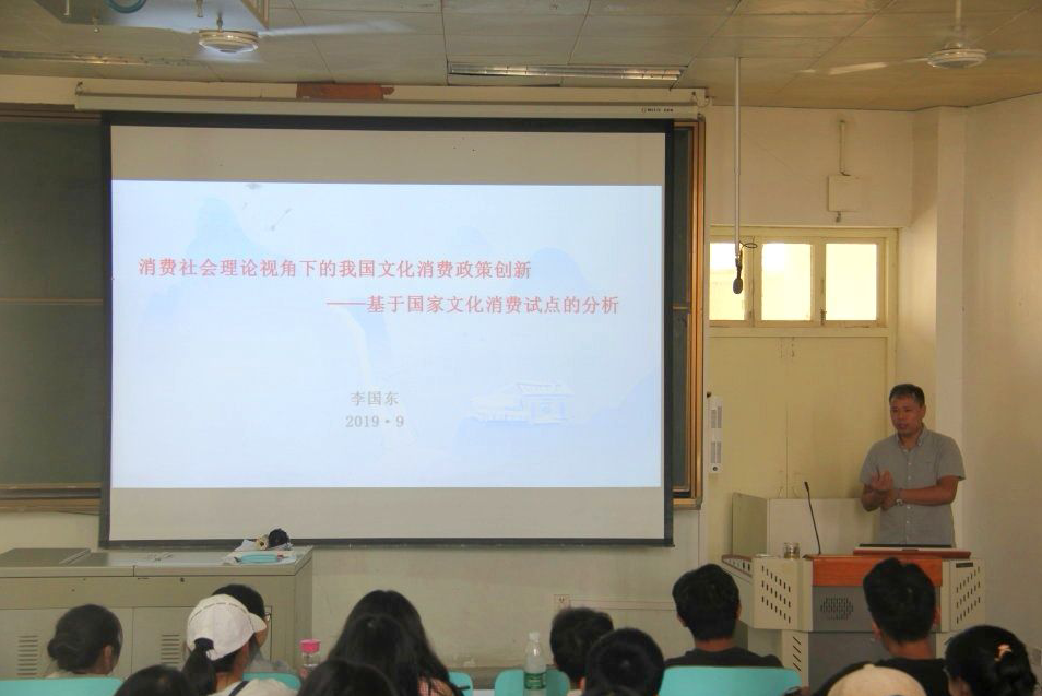 9月27日下午,我院在人文楼609教室开展了本年度第五场人文视野讲座,讲座主题为“消费社会理论视角下的我国文化消费政策创新---基于国家文化消费试点的分析”,主讲人为我院教师李国东博士。2017、2018级文化产业管理专业全体学生到场听讲。