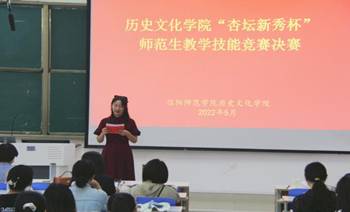 为有效提升我院师范生教育教学技能水平,加强历史教学专业技能培养,我院举办了“杏坛新秀杯”师范生教学技能大赛。此次大赛分为初赛和决赛两个阶段。经过初赛选拔后,5月28日上午,我院在社科楼212教室举办了“杏坛新秀杯”师范生教学技能决赛。院长叶宗宝,副院长李志坚、孙炜,历史系主任张乐锋,实践教学中心主任姚磊,历史学博士邹维一、惠鹏飞等老师应邀担任本次大赛的评委。2020级学生参加观看了此次比赛。