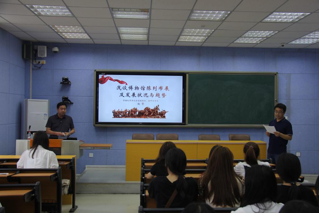 赵馆长首先介绍了博物馆的概念,介绍了博物馆的属性、功能、体验以及我国博物馆的发展历程。并分析了博物馆的受众人群和陈展分类、陈展方式。受众人群主要包括:参观学习者、普通参观者、研究学者。博物馆展陈的类型可分为历史类、艺术类、科学与技术类、综合类等四种基本类型。陈展方式主要有实物展示、多媒体展示、虚拟展示及互动陈展等。赵馆长重点阐述了博物馆的功能拓展、文创、数字化等问题。赵馆长认为,随着党和国家对博物馆事业的重视,博物馆的功能不断得到拓展。举例介绍了举办纪念、节庆活动,专题展览、专题讲座、培训班、研学、学术研讨会以及教学实践、社会教育等方面的功能。还对鄂豫皖革命纪念馆的文创产品进行了介绍。最后,赵馆长探讨了博物馆未来的发展趋势。他认为,博物馆的发展趋势主要表现包括:服务社会的理念和使命感上升;新型博物馆不断产生;新兴科技在博物馆广泛运用;博物馆不断走向市场化;环境保护;博物馆与文旅融合发展等。