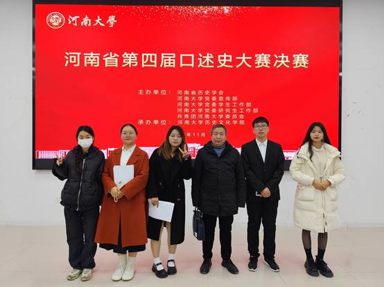 11月21日,由河南省历史学会、河南大学党委宣传部、河南大学党委学生工作部、河南大学党委研究生工作部、共青团河南大学委员会联合主办,河南大学williamhill中国承办的河南省第四届口述史大赛决赛在河南大学明伦校区科技馆一楼报告厅举行。由我院历史学专业本科生朱娜、张书博、贾玉娟、石钧、侯越凡组成的汉风楚韵队荣获三等奖。