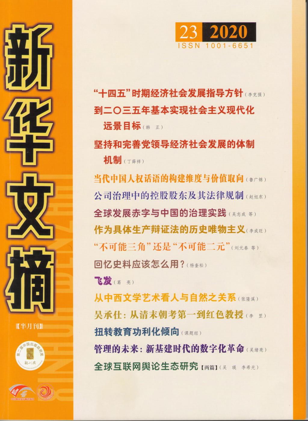 编者按:最新一期《新华文摘》(2020年第23期)全文转载了我院院长尹全海教授发表在《信阳师范学院学报》 (哲学社会科学版)(2020年第5期)的论文“《台湾通史》百年记忆”。这是尹全海教授在我校学报发表论文第二次被全文转载。上次被全文转载论文发表在《新华文摘》(2018年第15期),题目为“炎黄学研究对象述论”。尹全海教授长期深耕从事根亲文化与两岸交流、炎黄文化与炎黄学研究,不断推出学术精品力作,最新学术研究成果被《新华文摘》全文转载,既是对尹全海教授学术成果的肯定,也是对我校学报选题策划统筹、特色栏目建设、编辑队伍优化和评审质量提升的褒扬,说明我校教师和学报学术成长发展联动效应明显。