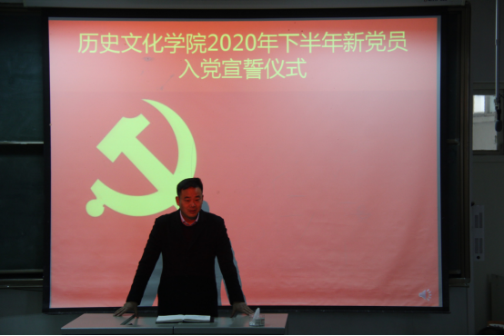 12月8日下午,我院在人文楼609教室举行了2020年下半年预备党员宣誓仪式,院党委书记李军辉、副书记刘喜元,支部书记付亚男、邓皓,2020年下半年转正党员、新发展党员及部分入党积极分子参加。仪式由刘喜元主持。