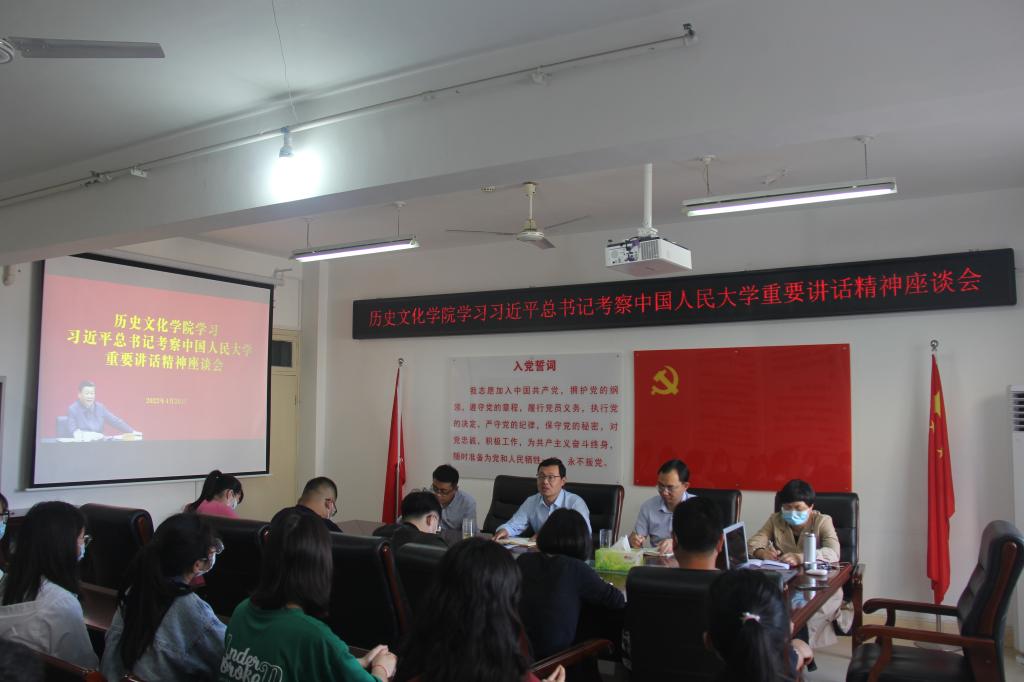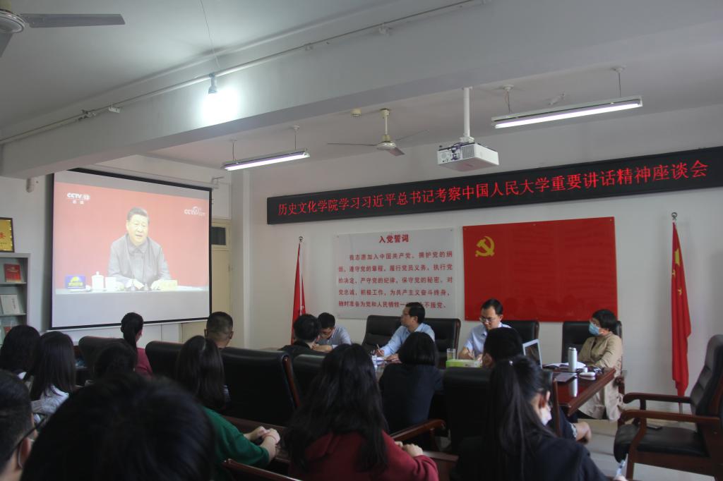 4月26日上午,我院召开学习习近平总书记考察调研中国人民大学重要讲话精神座谈会,学院党委书记李辉,党委副书记韩志宏,副院长李志坚、孙炜、史经霞与师生代表共同参加。会议由韩志宏主持。