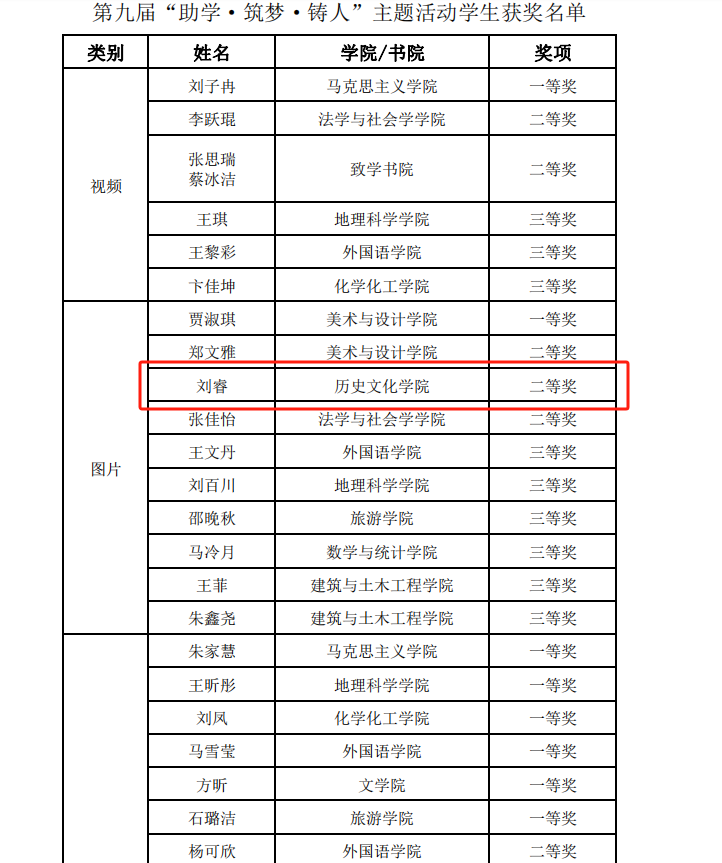 近来,在williamhill中国师生共同努力下,学院学生工作再创佳绩,获系列荣誉表彰。学院2022级学生李东泽、吕明磊分别获批2023年河南省本科高校大学生创新创业训练计划国家级项目立项(全校共有国家级立项11项,学院占2项);2022级学生刘睿在williamhill体育中文第九届“助学·筑梦·铸人” 主题活动评选中获图片类二等奖(全校共征集各类作品361件,其中获奖49件,图片类仅占10件)。