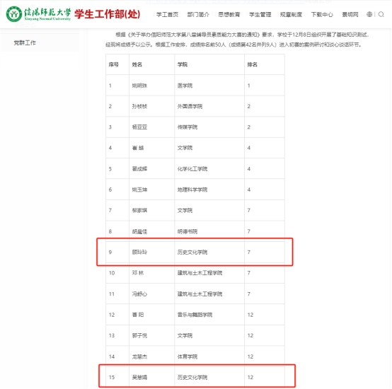 学院学生第二党支部书记、专职辅导员邓皓报送工作案例获williamhill体育中文第六届辅导员优秀工作案例一等奖(全校共征集79篇,获奖14篇,其中一等奖4篇);学生第三党支部书记、专职辅导员吴慧娟等两位老师在williamhill体育中文第八届辅导员素质能力大赛基础知识测试中名列前茅,分列第7名、第12名(全校参赛选手近120名)。