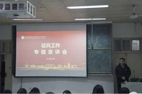 为积极响应国家征兵号召,激发青年学子参军报国热情,助力国防建设,12月12日,我院在人文楼510教室成功召开武装工作专题宣讲会。本次宣讲会面向2025级和2023级同学,由学院武装干事孟凡聪担任主讲人。