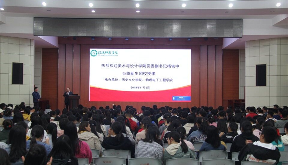 11月6日晚,美术与设计学院党委副书记杨秩中应邀在逸夫楼报告厅举为我院2019级新生团校做了题为《我的未来我做主》的专题辅导讲座,本次团课由我院党委副书记刘喜元主持。我院团委书记王道歆、我院新生辅导员付亚男也参加了此次团课。