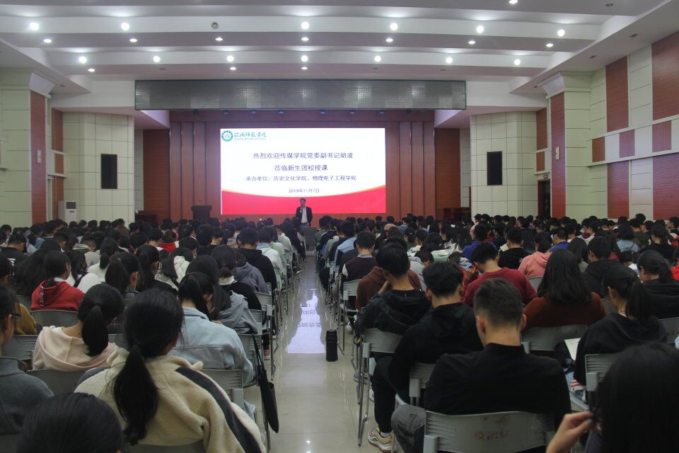 11月7日晚, 传媒学院党委副书记胡波应邀在逸夫楼报告厅举为我院2019级新生团校做了题为《大学路途》的专题辅导讲座,本次团课由我院党委副书记刘喜元主持。我院团委书记王道歆、新生辅导员付亚男也参加了此次团课。