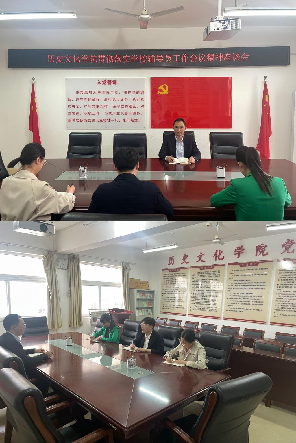 5月17号下午,我院召开贯彻落实校党委书记王文鹏同志在学校辅导员工作座谈会上讲话精神会议,学院党委副书记韩志宏与全体专职辅导员重温讲话要义。首先,韩志宏和学院辅导员就上午座谈会精神进行全面学习、深入领会,对王书记的高度肯定、殷切期盼和寄予厚望,表示要通过全力学习研究工作、开拓创新工作、矢志奋斗工作来积极响应和努力践行;对王书记指出的不足问题,表示将以强烈的责任感、使命感、担当精神认真查摆问题,立行立改,不断提升完善自我。其次,要结合我院实际和特点,将工作要求落实落细,抓紧抓好。最后,要以此为契机,进一步以自学、集中学、辅导学等形式下大力气和更大功夫强化辅导员素质能力建设,努力打造一支符合新时代要求的高质量创新型思想工作队伍,更好落实立德树人根本任务,做学生健康成长的引路人。