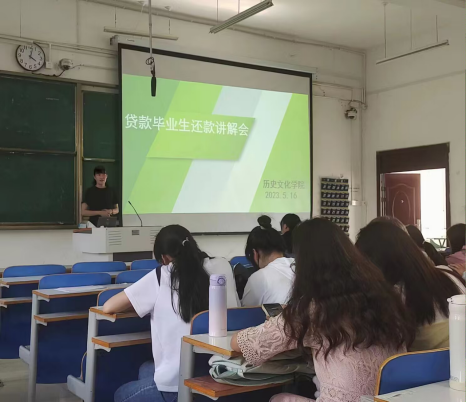 会上,吴老师对国家助学贷款的还款方式、还款流程、起息日、展期的办理流程等做了详细讲解,并对2023年国家助学贷款免息及本金延期偿还工作进行解读,增强贷款同学对政策的了解,确保贷款同学知晓如何还款。并向同学们普及了金融、征信等相关知识,宣传诚实守信的事迹,促使同学们增强诚信还款的意识,树立法治观念。最后,针对现场同学们提出的疑问又进行了一一解答,确保同学们知晓政策、了解政策,严格遵守政策规定,远离贷款逾期。