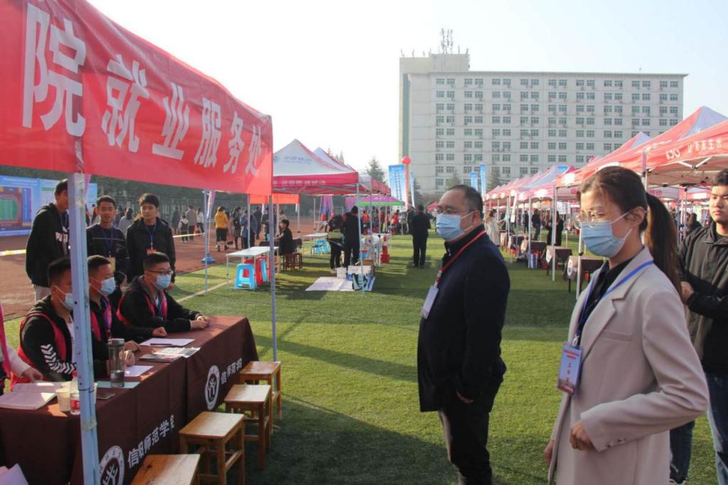 11月7日,由河南省教育厅主办,信阳师范学院承办的“河南省毕业生就业市场豫南分市场暨信阳师范学院2021届毕业生线下冬季双选会”在我校西操场举行。我院在现场设有就业服务站,为招聘单位和我院毕业生提供便利服务。