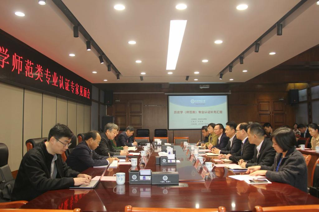 11月3日至11月6日,教育部认证专家组组长、黄冈师范学院项俊教授,专家组成员商丘师范学院郭文佳教授、唐山师范学院王淑娟教授、河南省淮滨高级中学李明校长、河南师范大学黄东亮秘书一行进校对我院历史学师范类专业第二级认证开展了进校考察工作。