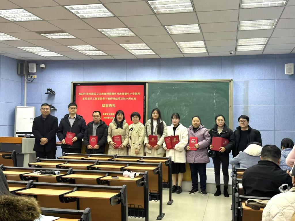 12月4日上午,我院承办的2024年度河南省义务教育师资薄环节改善暨中小学教师素质提升工程省级骨干教师培能项目初中历史班结业仪式在人文楼706教室举行。副院长孙炜与来自全省各地市的近50名初中历史骨干教师参加。仪式由历史系主任张乐锋主持。