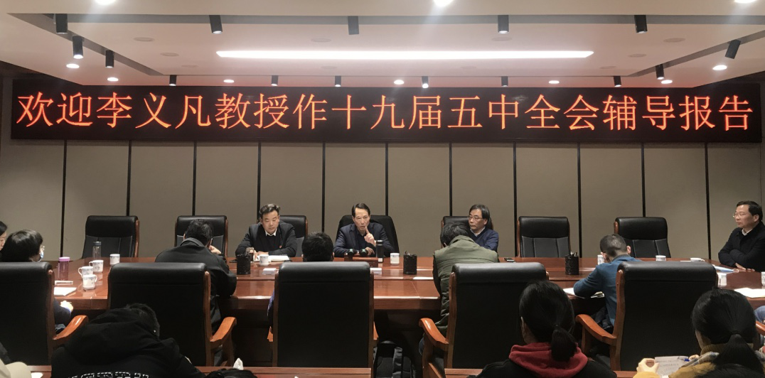 为深入学习贯彻党的十九届五中全会精神,11月26日下午,应我院邀请,原周口师范学院校长李义凡教授逸夫楼321会议室为我院师生作辅导报告。辅导报告由我院党委书记李军辉主持。