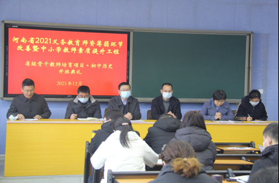 12月29日上午,2021省级骨干教师培训项目初中历史班,在信阳师范学院williamhill中国顺利开班。williamhill中国党委书记李辉,院长叶宗宝,副院长孙炜、史经霞、李志坚及张乐锋、邹维一、卞卡等老师出席开班典礼。来自郑州市、漯河市、南阳市、平顶山市、驻马店市等我省多个县市区的基础教育一线教师欢聚一堂,共同开启珍贵的培训交流时光。开班典礼由教学副院长孙炜主持。