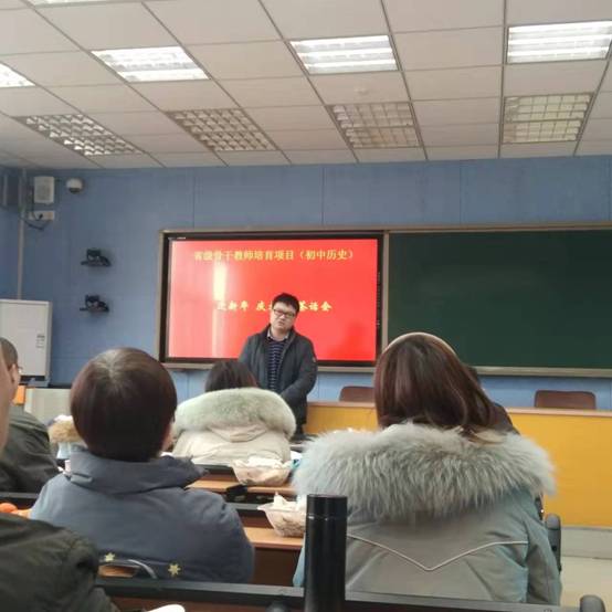 叶宗宝院长首先对学员们表达新年祝福,并预祝参训学员老师们能够学有所成。为庆祝新年元旦,学校教务处还为参训学员老师们精心挑选了一本专业书籍作为新年礼物,在茶话会现场,历史系主任张乐锋老师将礼物一一分发给各位学员,学员们纷纷表示感谢。