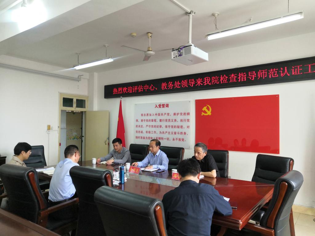 余国忠、周青山等领导认真听取了我院的汇报,并给出了重要的指导意见,余处长指出师范专业认证是大势所趋,意义重大,学院一定要克服困难把相关理念贯彻下去,使全体师生意识到认证的必要性,共同参与到专业建设之中。还要充分重视培养方案的重要性,制定科学的培养目标和毕业要求,对课程结构进行合理性评价;周处长强调了充分调研的重要性,指出专业建设要充分调研就业单位、毕业生、在校生等相关方面。孙科长从认证的指导理念、具体要求出发,阐释了“反向设计、正向施工”的内涵,对认证指标体系应该着重关注的环节进行了解读,强调很多工作一定要做在平时。