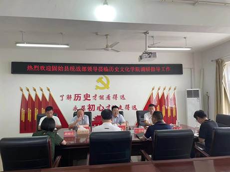 7月25日上午,固始县委统战部常务副部长林扬、四级调研员杨光,县根亲文化服务中心副主任徐进等来我院考察交流,商讨第十一届固始与闽台关系研讨会相关事宜。根亲文化与两岸交流中心主任尹全海、院长叶宗宝、副院长李志坚、史经霞等参加。交流会由尹全海教授主持。