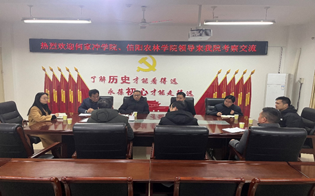 12月20日下午,何家冲学院副院长杨纪伟、红二十五军文化研究会副会长李国强、教研部主任许雷,信阳农林学院马克思主义学院敖翔教授、潘军博士、校宣传部王楠老师等一行6人来我院调研大别山精神研究情况。