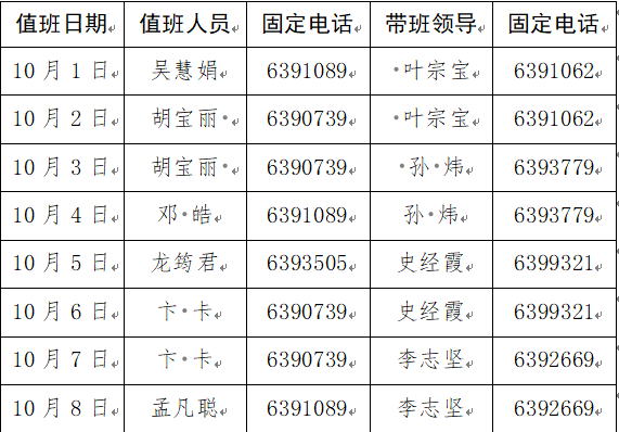 williamhill中国2025年国庆节值班表